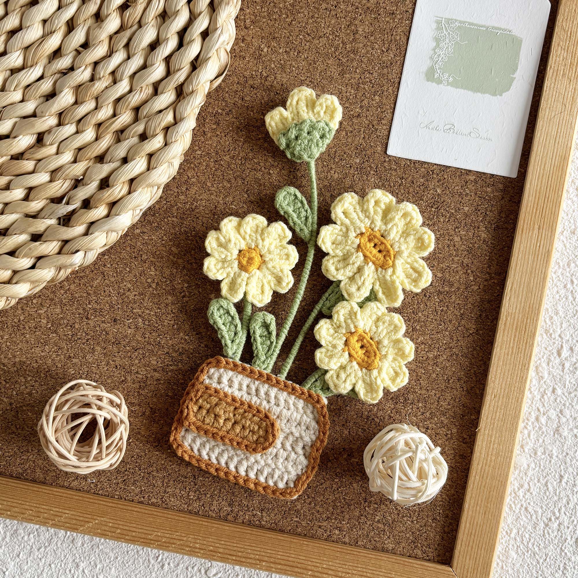 - This PDF contains pattern for the flat daisy vase, and picture tutorials for assembling and crochet techniques.